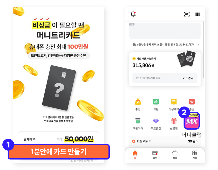 1. 머니트리카드를 신청합니다. 머니트리카드는 카드 발급비와 연회비 없이 무료로 신청할 수 있습니다.